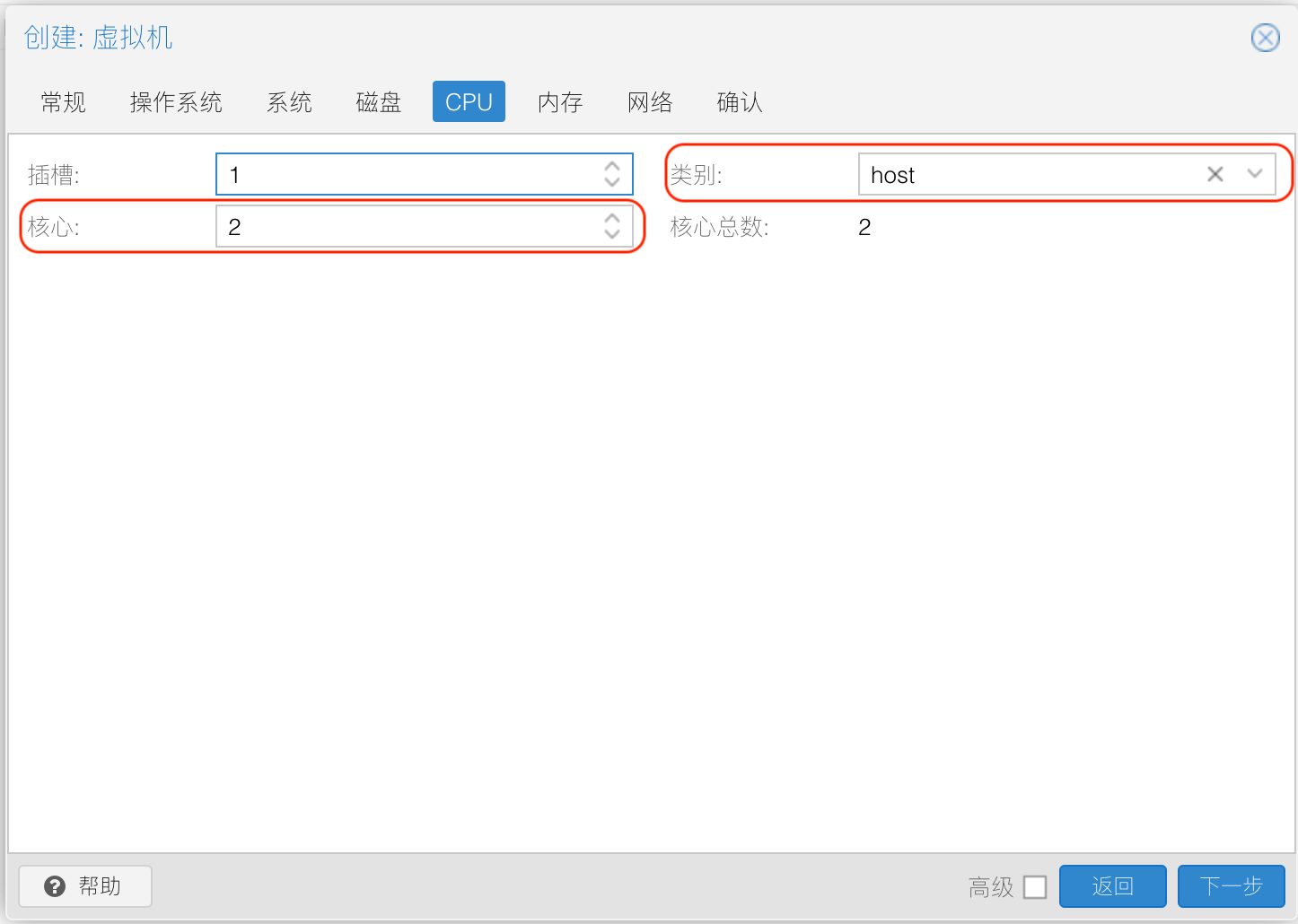 CPU 仍然 HOST 模式,核心的话可以给 1个,下一步