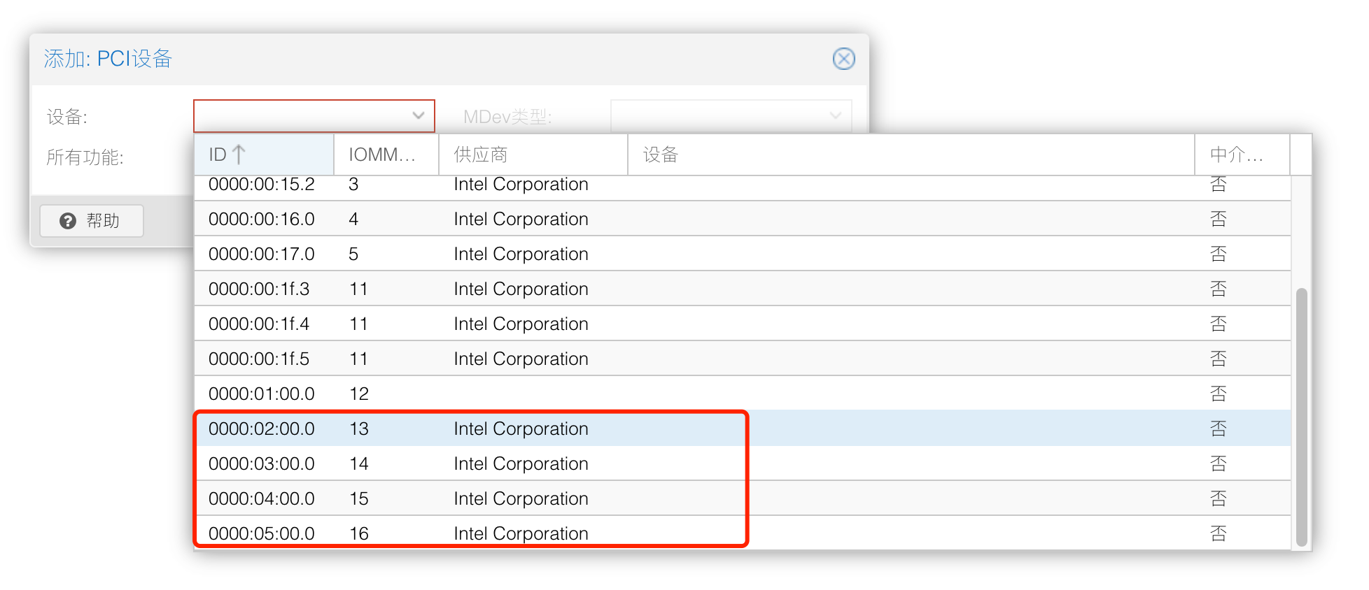得到一个 enp 开头(当然你的可能是别的开头的)的就是当前宿主机正在使用的真正的物理网卡了,它的编号和 PCI 的编号是对应的,因此在我上面给到的例子中,除了 0000:05:00.0 之外的其他网络 PCI 设备,全部都选中,直通到虚拟机中。