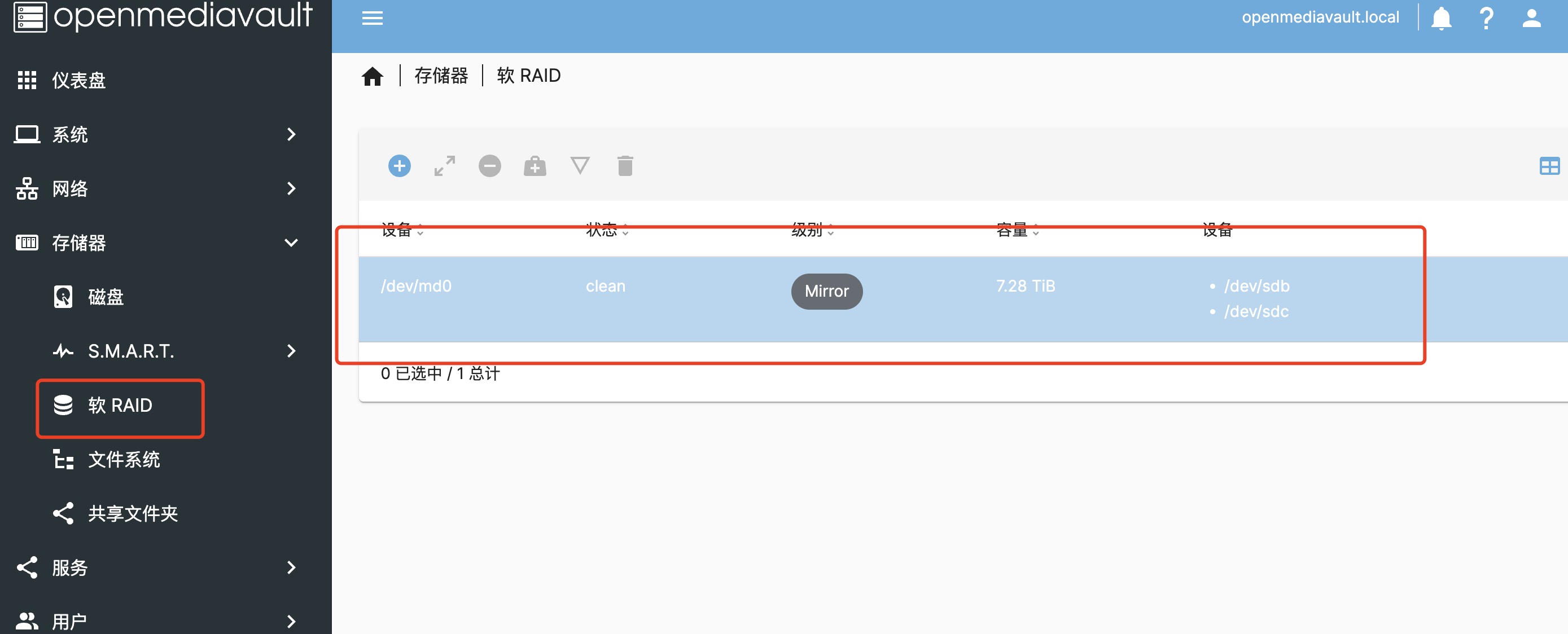 紧接着我们可以通过 openmediavault 来对阵列进行管理、挂载和共享了。