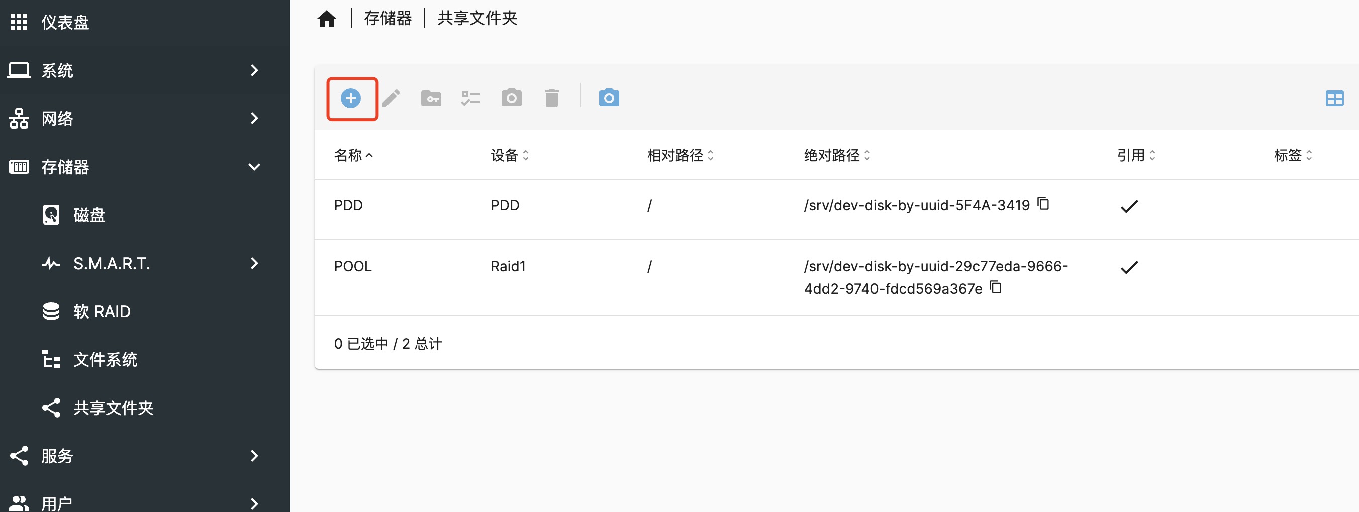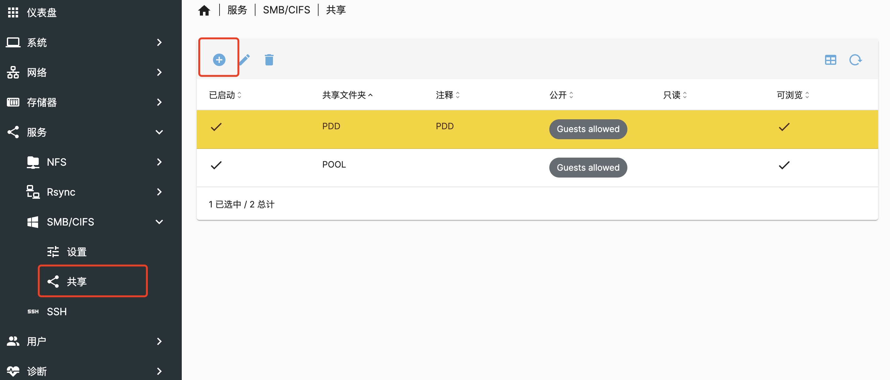 这里的共享文件夹对于 OMV 的逻辑来说是设置需要共享的文件夹,只要再次添加的文件夹才能被后续的服务中共享。